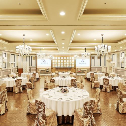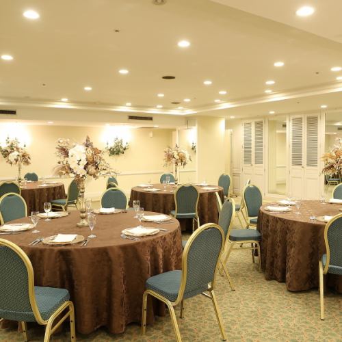 ヨーロピアンエレガンスで統一された特色ある宴会場です。ゲストハウスのような雰囲気を醸し出し、クラシックやジャズの生演奏などアイデアあふれる空間演出が可能。一体感を深める研修や立食パーティーにご活用ください。宴会場ご利用の際は、別途ご利用条件がございます。詳細はお電話にてご説明申し上げます。